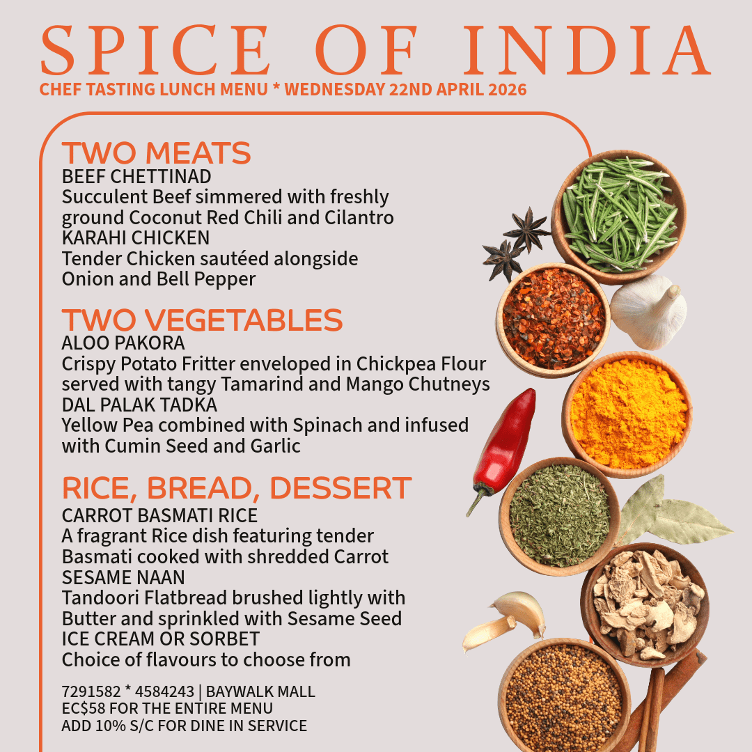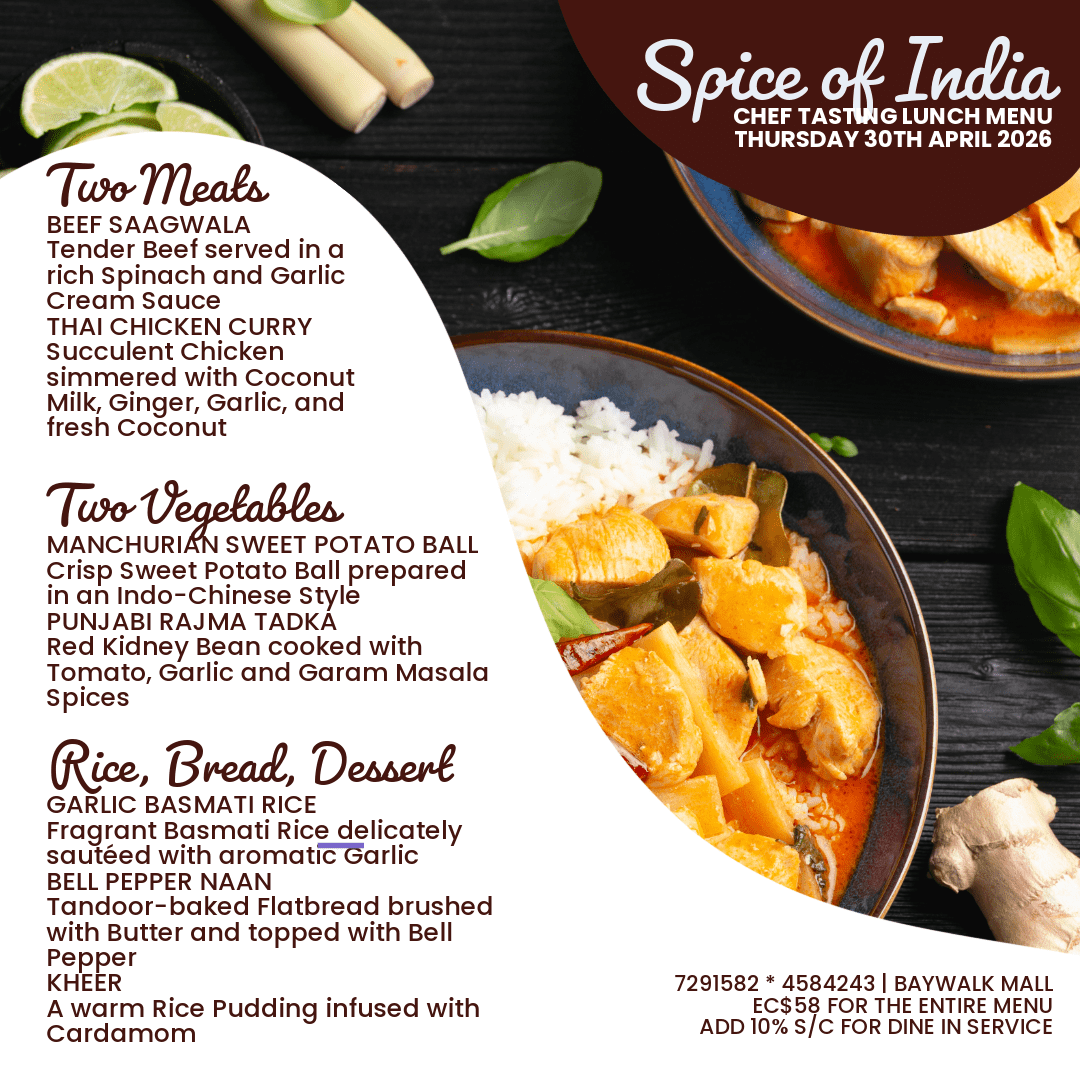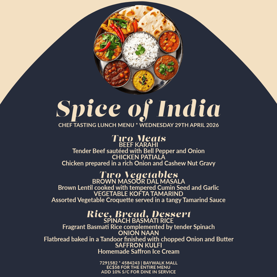 Spice of India is truly a sophisticated Indian restaurant situated in the heart of Rodney Bay. With over 20 years in the industry, Chef Adil has travelled across the Atlantic Ocean creating scintillating dishes to satisfy the palates of eager patrons throughout the Caribbean. Along with his Sous chef, Chef Adil celebrates his love of cooking by bringing a modern flair to the ancient, traditional Indian Tandoor technique of cooking to St. Lucia. Diners can enjoy watching the Chefs in action in the open display kitchen or gain personal lessons from the chef himself.