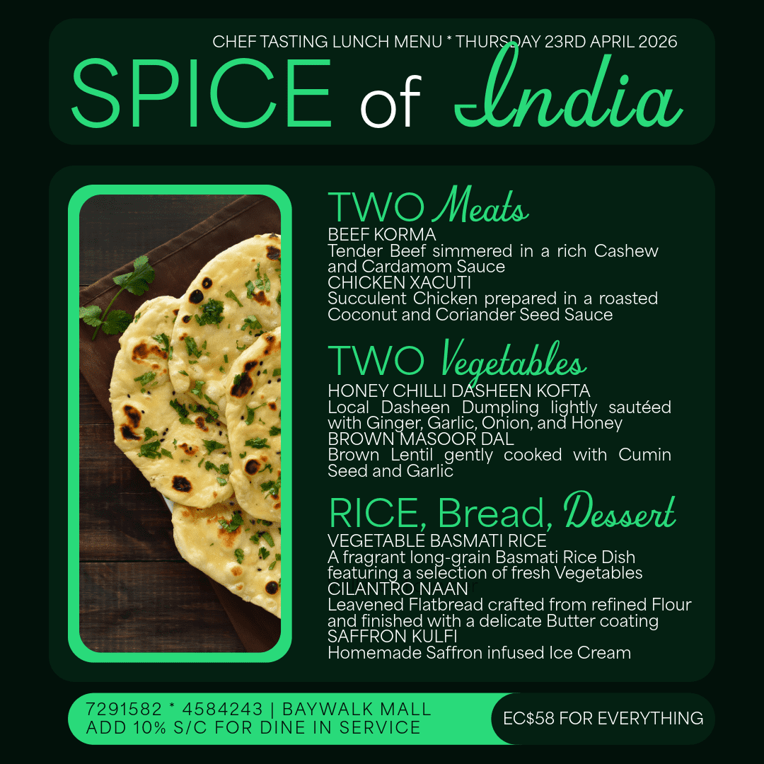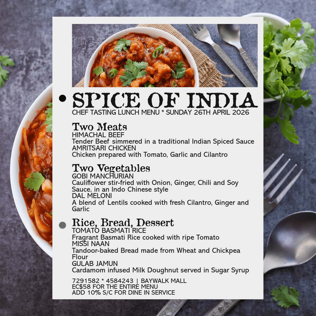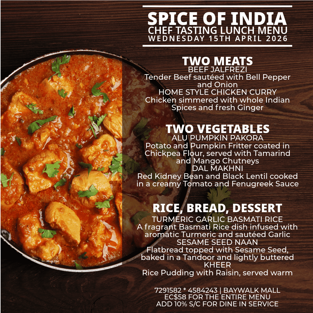 Spice of India is truly a sophisticated Indian restaurant situated in the heart of Rodney Bay. With over 20 years in the industry, Chef Adil has travelled across the Atlantic Ocean creating scintillating dishes to satisfy the palates of eager patrons throughout the Caribbean. Along with his Sous chef, Chef Adil celebrates his love of cooking by bringing a modern flair to the ancient, traditional Indian Tandoor technique of cooking to St. Lucia. Diners can enjoy watching the Chefs in action in the open display kitchen or gain personal lessons from the chef himself.